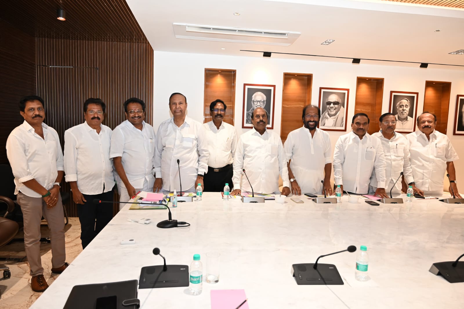 2026 சட்டமன்ற தேர்தலின் தொகுதி பங்கீடு தொடர்பாக, அண்ணா அறிவாலயத்தில் நடைபெறும் பேச்சுவார்த்தையில் மக்கள் நீதி மய்யம் தலைவரும், மாநிலங்களவை உறுப்பினருமான திரு. கமல் ஹாசன் அவர்களின் வழிகாட்டுதலின்படி,கட்சியின் பொதுச் செயலாளர் திரு. ஆ. அருணாச்சலம் அவர்கள், துணைத்தலைவர்கள் திரு. மௌரியா IPS (ஓய்வு) அவர்கள், திரு. R.தங்கவேலு அவர்கள் மற்றும் மாநிலச் செயலாளர் திரு. தட்சிணாமூர்த்தி ஆகியோர் கலந்துகொண்டனர்.