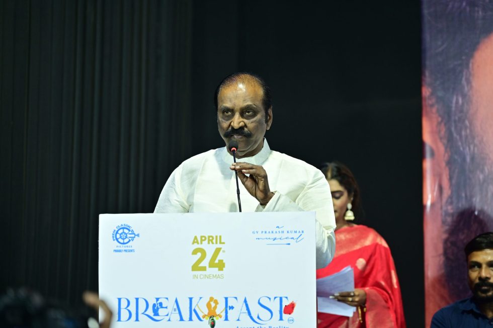 ‘பிரேக்ஃபாஸ்ட்’ திரைப்பட குழுவினருக்கு வாழ்த்துக்கள். குறிப்பாக ராணவ் அவர்களுக்கு வாழ்த்துக்கள். நீங்கள் இன்னும் பல படங்களையும், பல வெற்றிகளையும் பெற வாழ்த்துகிறேன். சினிமாவில் எல்லாருக்கும் ஒரு கனவு இருக்கிறது. அந்தக் கனவுக்கு என்ன செய்வது என்று தெரியாது. எனவே அதை நோக்கிய தேடலில் நமது பயணம் இருக்கும் அதில் சில வழிகளும் வேதனைகளும் இருக்கும்.